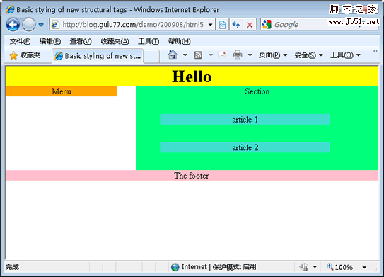 代码如下:header, footer, nav, section, article {