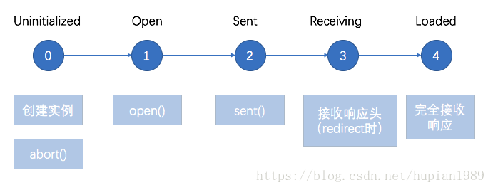 xhr 是的内置对象,提供在网页加载后与服务器进行通信的方法,基于事件机制来实现异步。使用xhr来发送http网络请求时,会经历如下生命周期:
