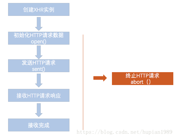 当xhr示列调用abort 方法后,http请求会终止,状态值会变为0;