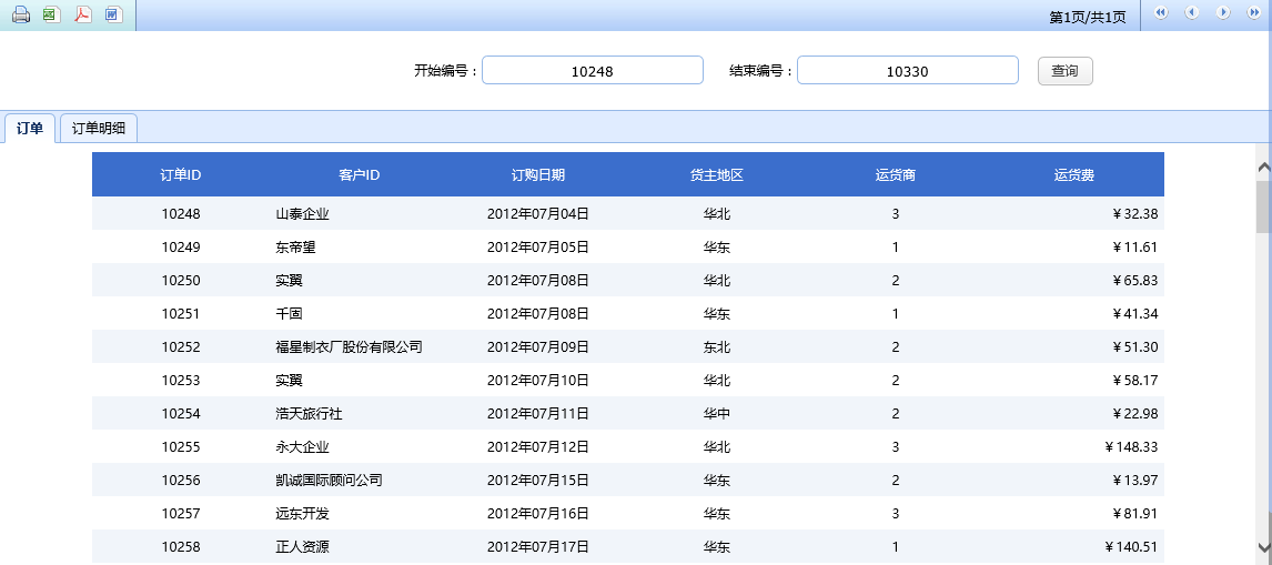 业务中,很多报表都是沿用之前 excel 的报表样式,原来以 sheet 格式显示的表,客户在 web 端展现的时候也希望也有同样的格式,润乾在实现这种效果和 excel 一样简单灵活,轻松将数据报表以多个 tab 页的形式展现在页面中,达到了一同展现,同时进行查询、打印、导出 excel 结果文件等操作。