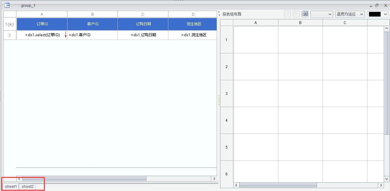 url 类型可以是相对路径也可以是绝对路径。点击确定后,我们在润乾的报表设计器下就能卡到两个 sheet 标签,默认的名称是 sheet1,sheet2……