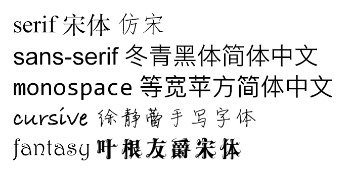 参考链接:serif,sans-serif,monospace,cursive和fantasy