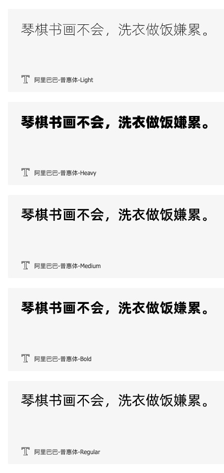 再比如,前段时间,阿里巴巴开源的普惠字体,也是支持多种粗细的: