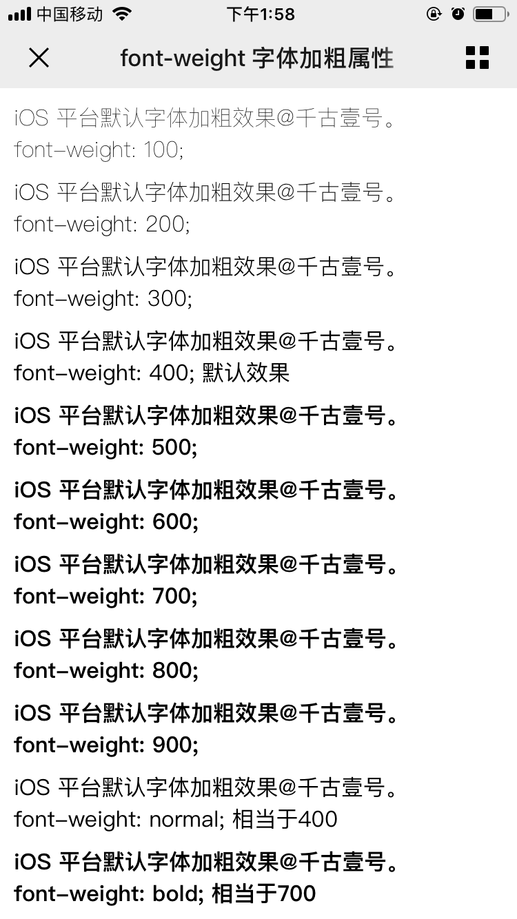 3、ios 平台的默认字体加粗效果:(苹方字体)