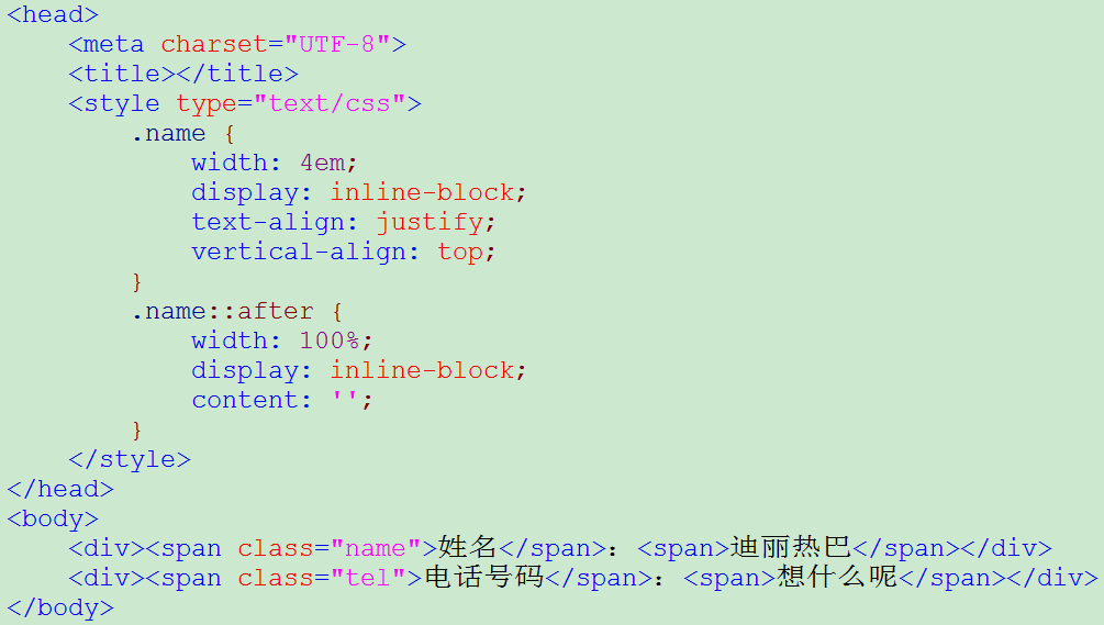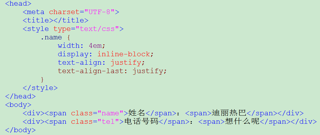 ,实际开发中我们经常会遇到这样的情景:需要把姓名和电话号码这两段文字对齐。我们自然会想到 text-align: justify; 我也是这么想的,我们来试一下: