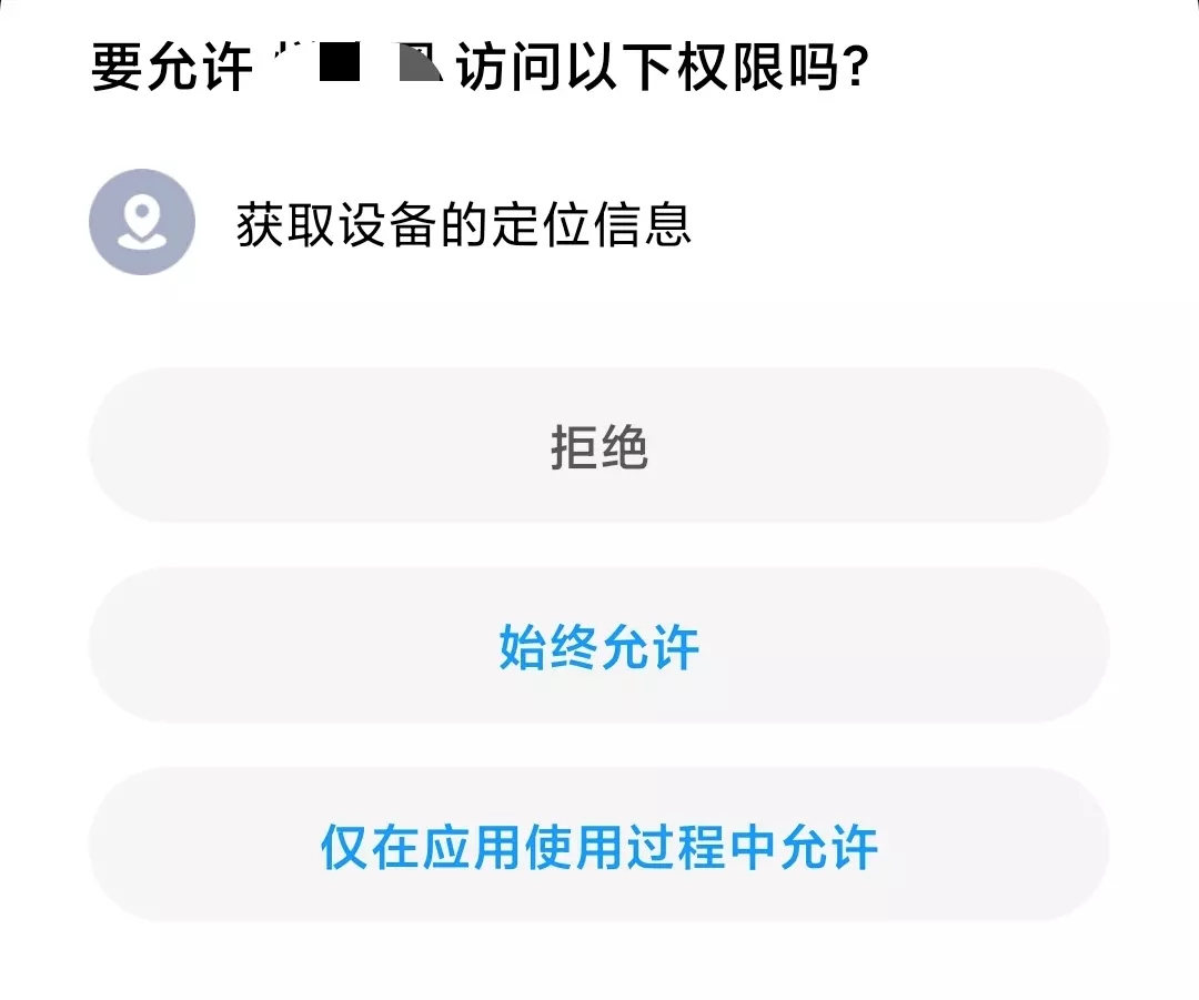 通过以上方法,就可以获取用户是否允许APP后台定位,如果用户不允许,就会提示下面的对话框。