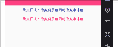 <EditText android:textColor="@color/bg_edittext_one" android:layout_width="match_parent" android:layout_height="45dp" android:text="焦点样式:改变背景色同时改变字体色" android:gravity="center" />