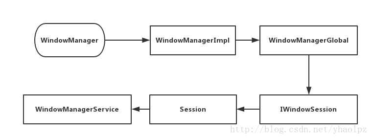 终于,Window 的添加请求移交给 WindowManagerService 手上了,在 WindowManagerService 内部会为每一个应用保留一个单独的 Session,具体 Window 在 WindowManagerService 内部是怎么添加的,就不对其进一步的分析,因为到此为止我们对 Window 的添加这一从应用层到 Framework 的流程已经清楚了,下面通过图示总结一下:
