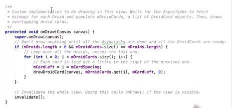 上面的示例图中显示了一个自定义的View,主要效果是呈现多张重叠的卡片。这个View的onDraw方法如下图所示: