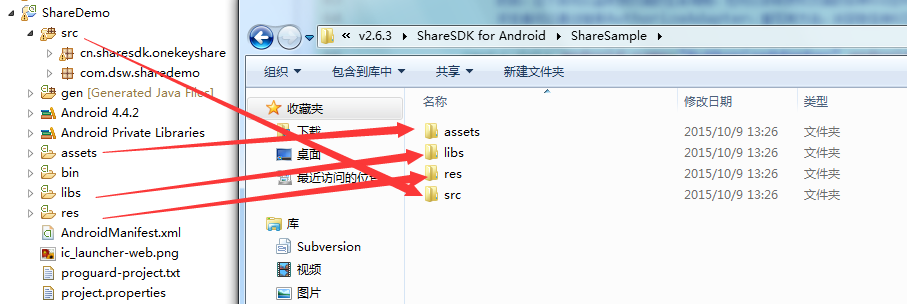 5、至此,所有需要的文件都已经拷贝到我们工程中,我们接下来就是修改Manifest文件的配置。
