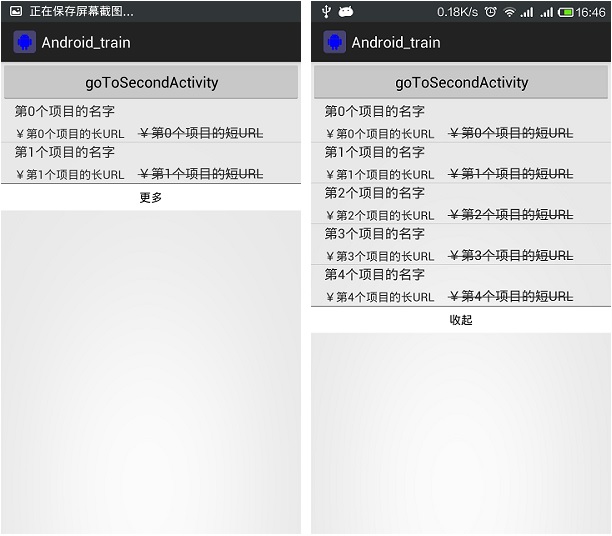 代码如下(主要通过继承Adapetr,控制展示的数据量getCount()方法实现,当数据量大于默认值(2)时,自动只展示2条数据,当点击更多时,则展示全部数据):