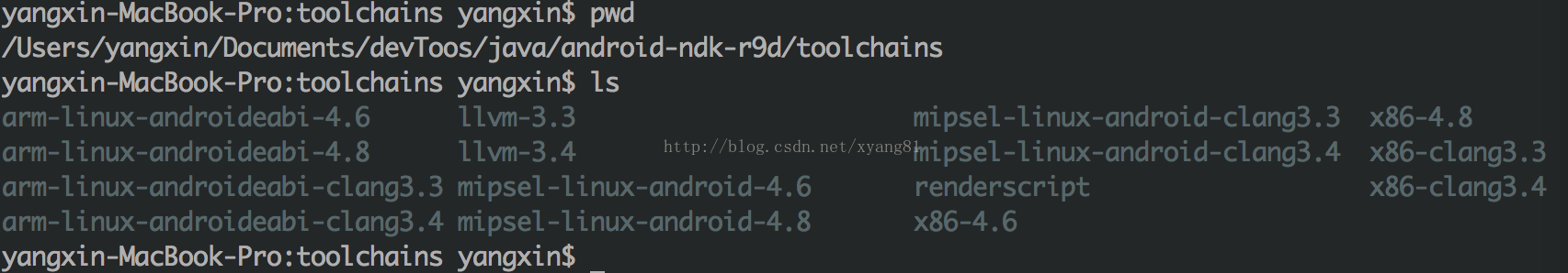 /Users/yangxin/Documents/devToos/java/android-ndk-r9d/toolchains/arm-linux-androideabi-4.8/prebuilt/darwin-x86_64/bin/arm-linux-androideabi-objdump -S -D /Users/yangxin/Documents/devToos/java/android-ndk-r9d/samples/hello-jni/obj/local/armeabi-v7a/libhello-jni.so > Users/yangxin/Desktop/dump.log