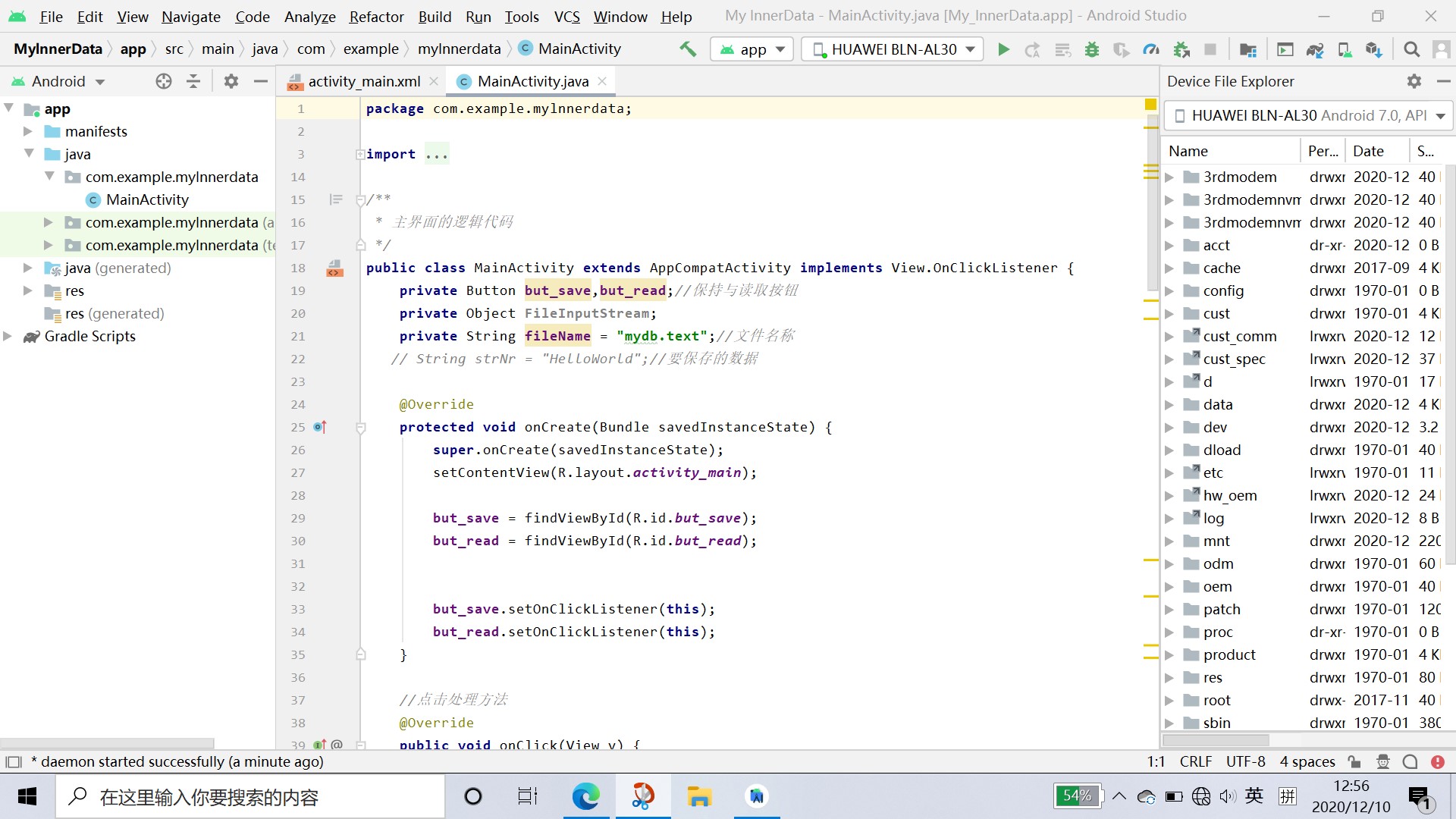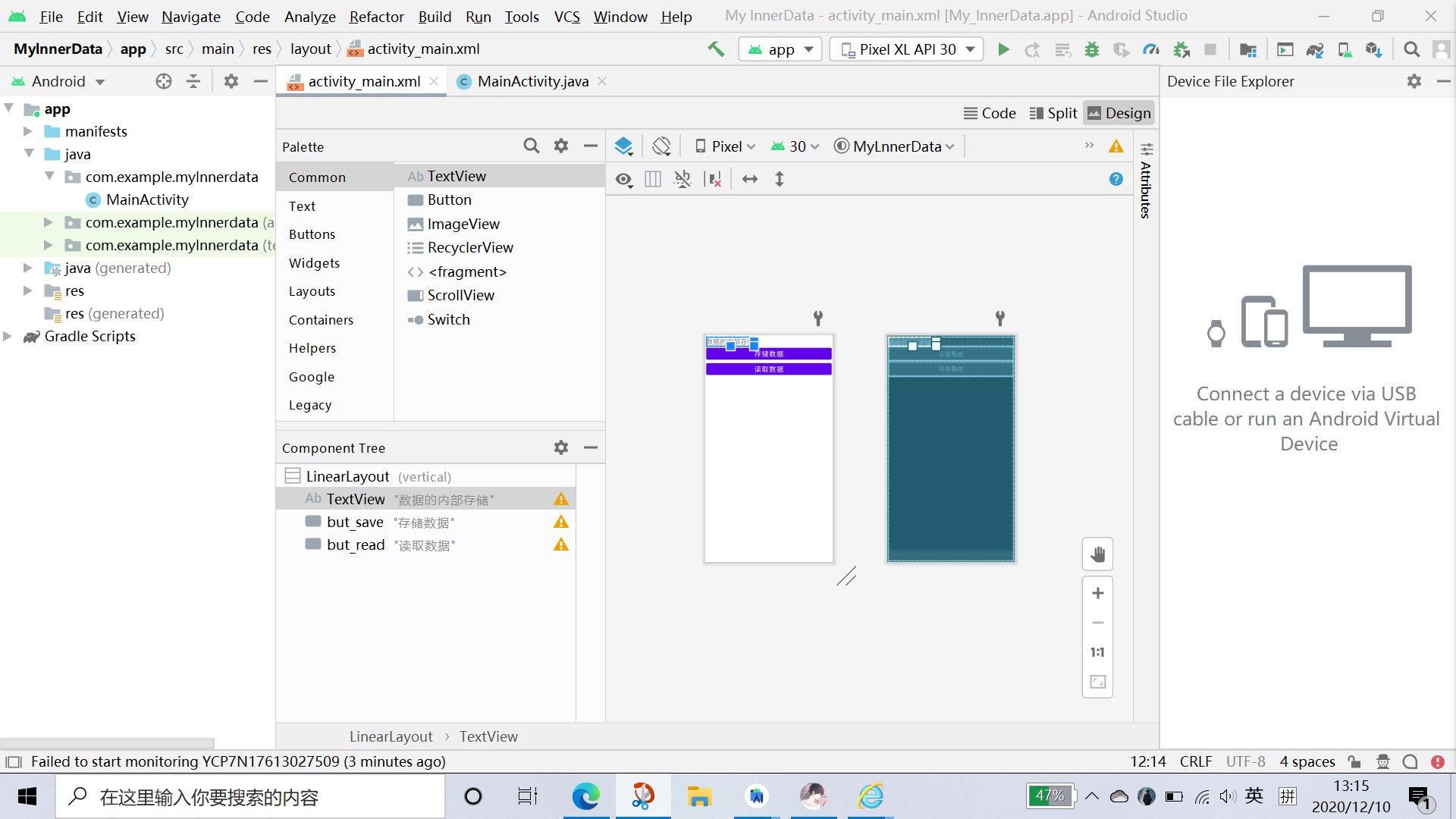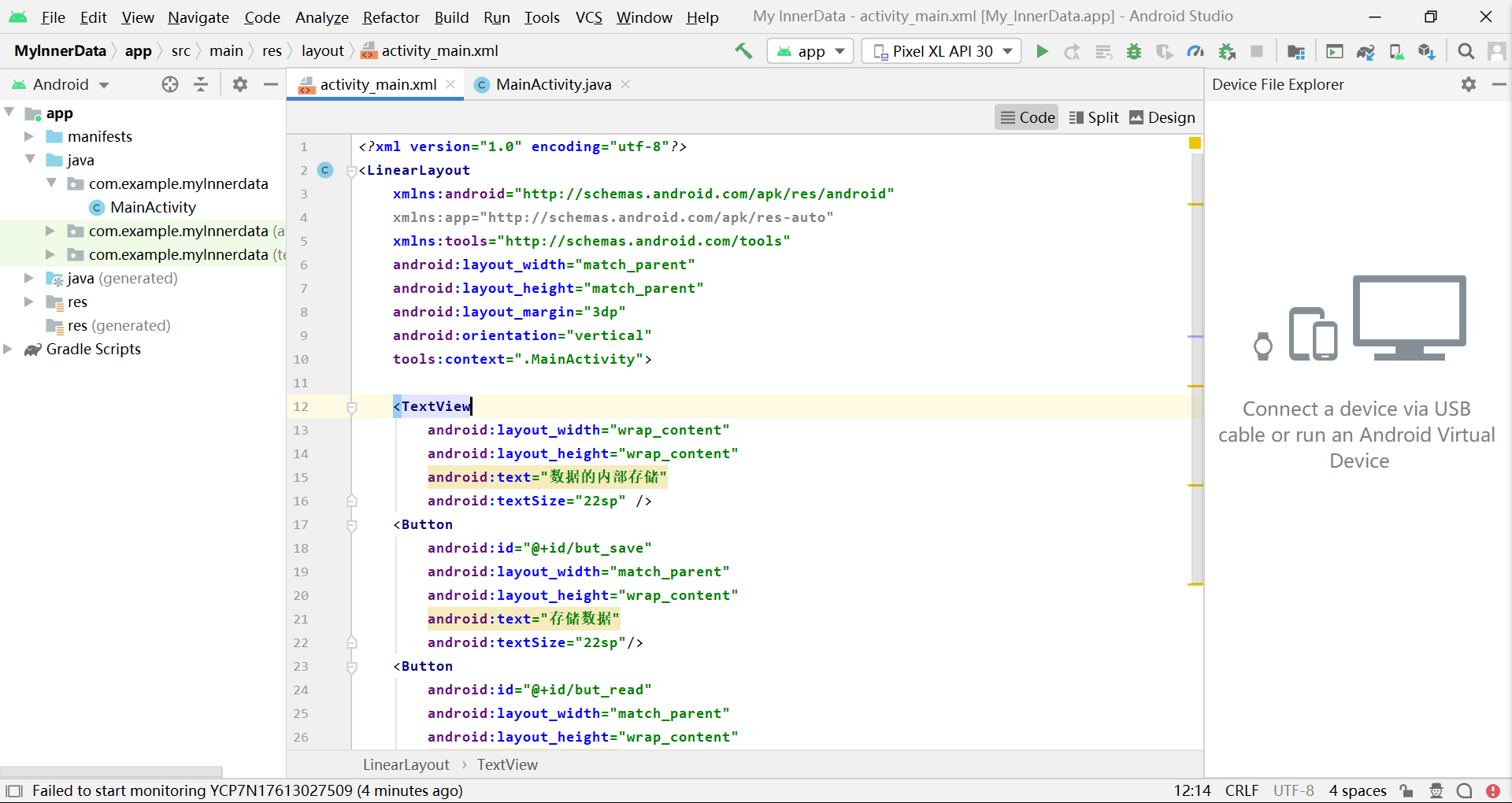 建立一个mylnnerdata后,activity_main_xml代码如下