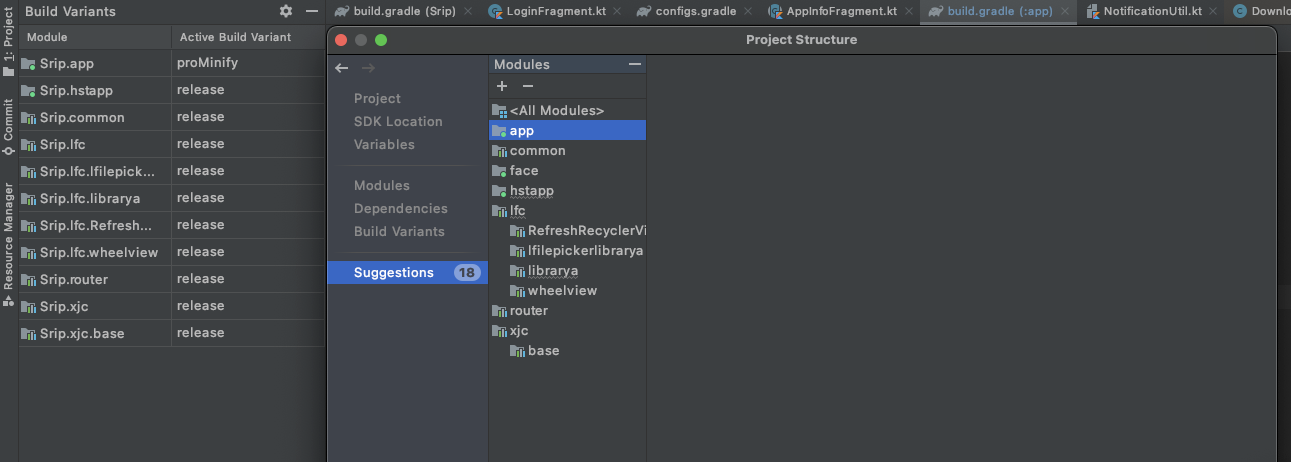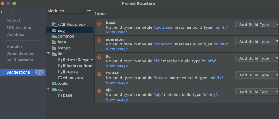 此时,如果想尝试增加混淆操作,但又不能轻易在release编译类型上直接新增混淆配置,所以需要增加一种编译类型,其基本编译配置与release一模一样,但是新增了混淆的设置,假设命名为minify