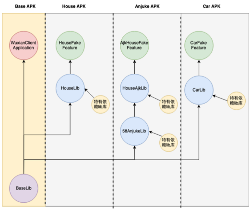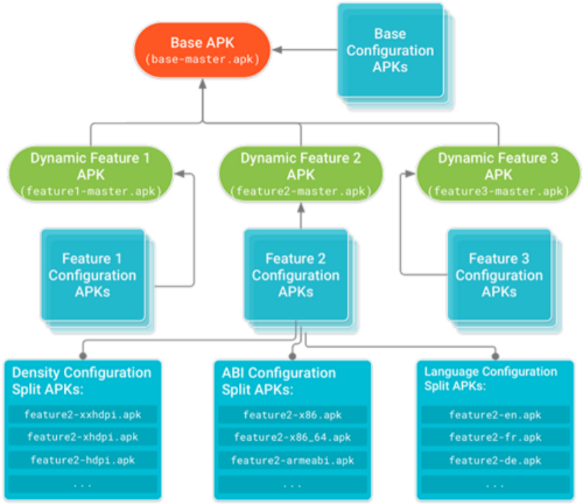 base APK?中包含?app lib1?与?common?库,dynamic feature?APK?只包含自己的库的代码和资源。