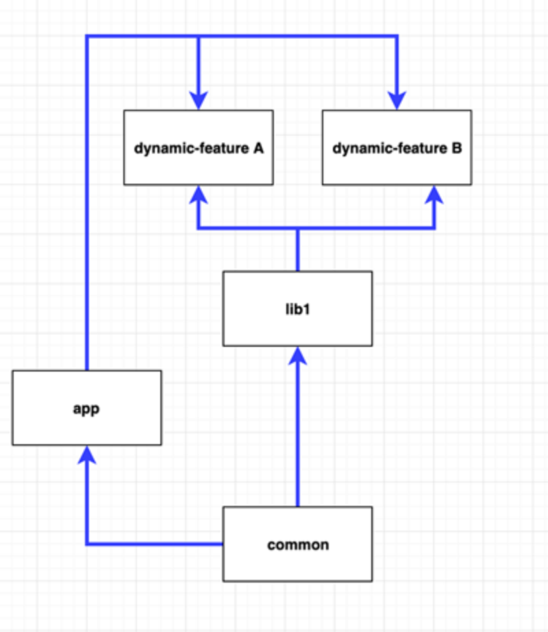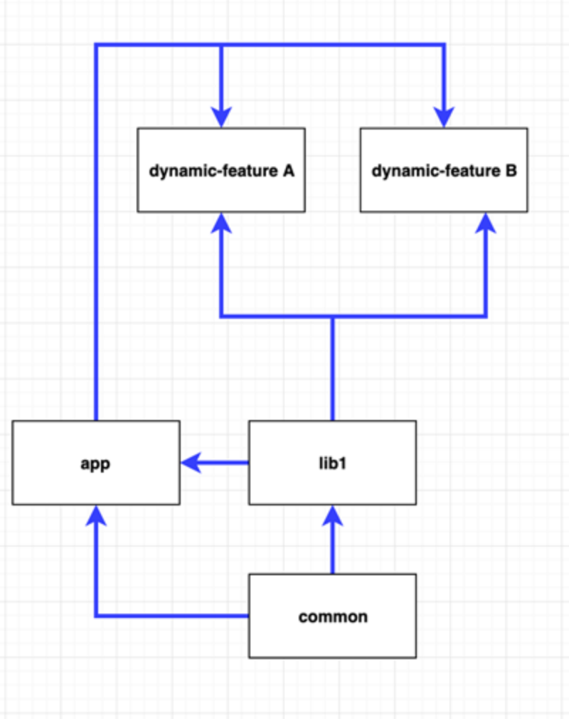 - Dynamic feature moudle?直接或间接依赖的库而不被?app?依赖的库会打到?dynamic feature?APK?中;
