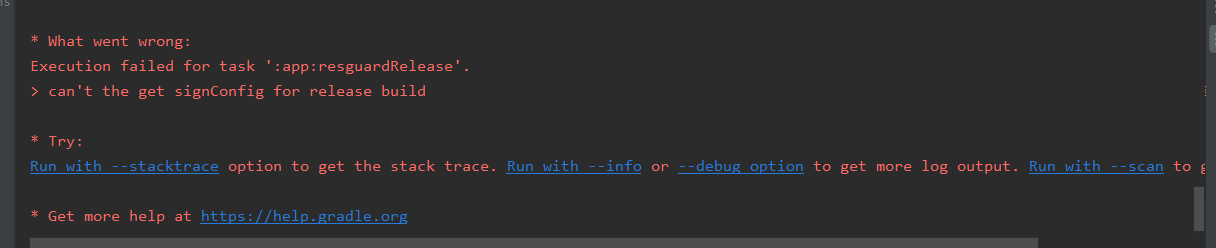 但如果没有设置好签名的话,resguardRelease会报一个没有签名配置的错误