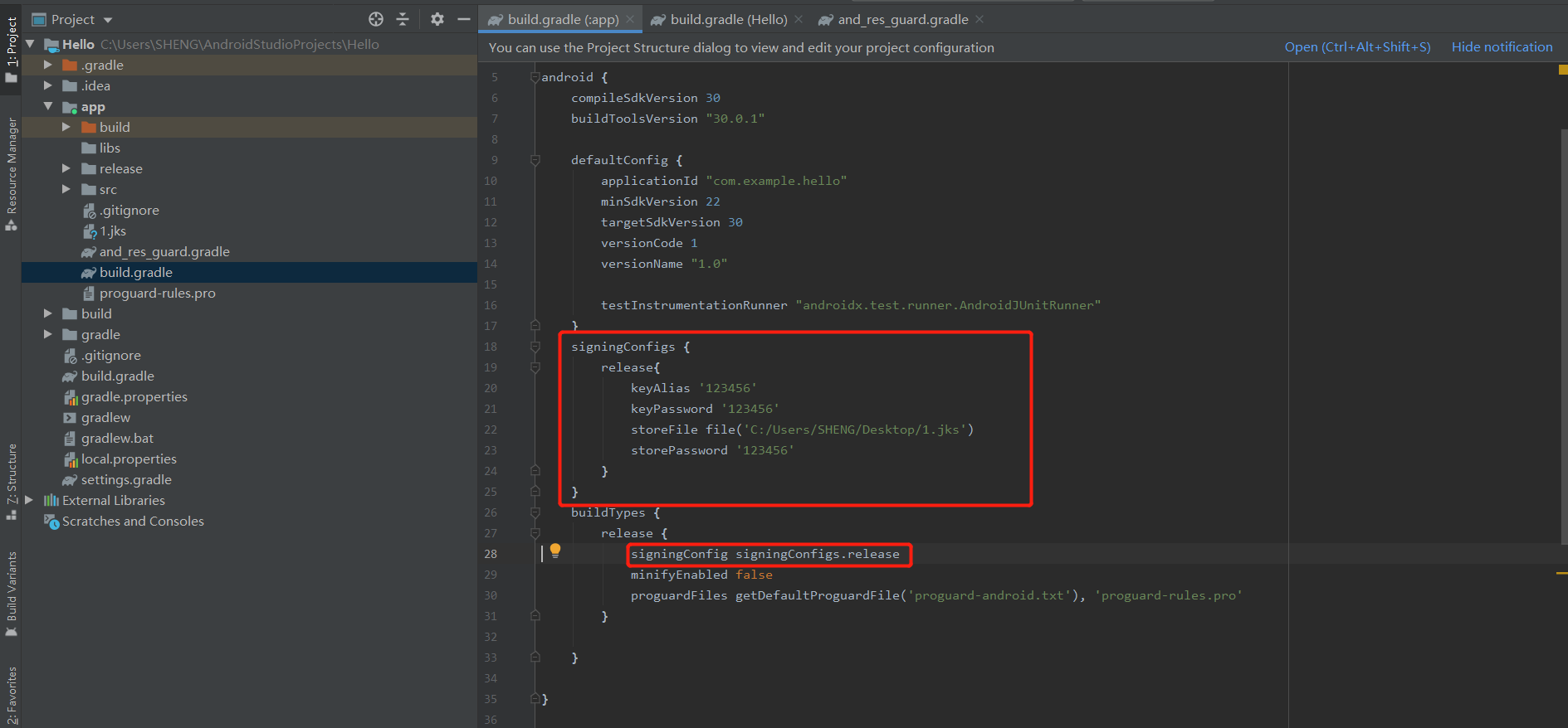 storeFile file('C:/Users/SHENG/Desktop/1.jks')