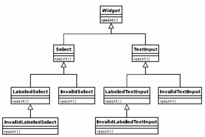 为支持每一种组合将产生大量的子类,使得子类数目呈爆炸性增长。
