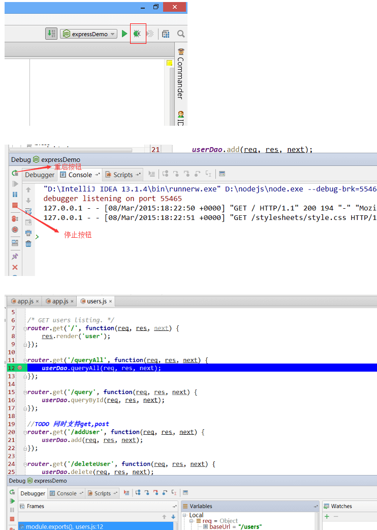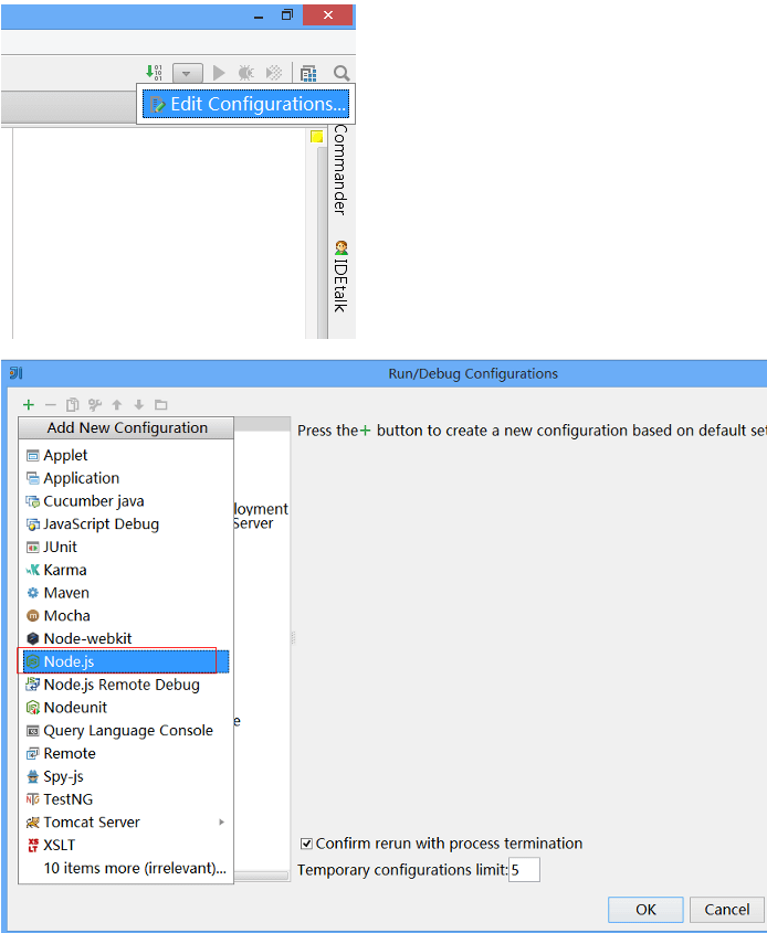 最后,如果你使用的是idea或webStrom这样的IDE,你就不需要安装express和express项目种子生成器了。这两个IDE是可以直接创建NodeJS项目