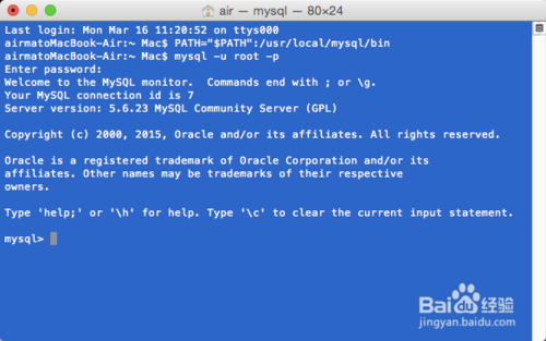 使用终端登录MySQL: