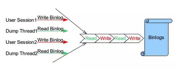 性能提升, Binlog 互斥锁改进旧版本半同步复制在主提交binlog的写会话和dump thread读binlog的操作都会对binlog添加互斥锁,导致binlog文件的读写是串行化的,存在并发度的问题。
