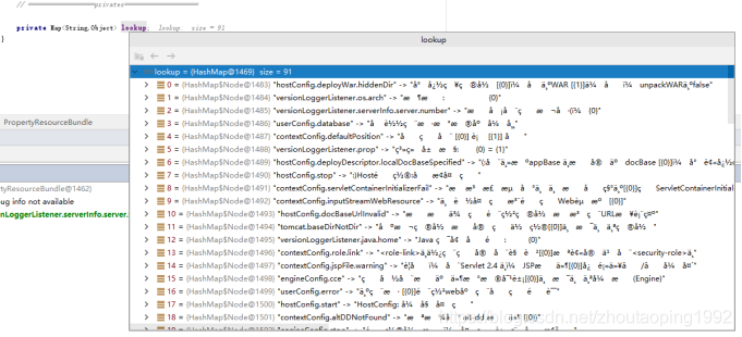 最终发现所有的值存在了propertyresourcebundle类的lookup的map集合中,集合中的数据已经乱码了。