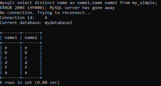 我们可以在两个语句之间加上一个union --默认选项distinct