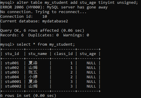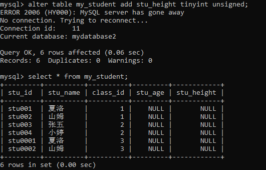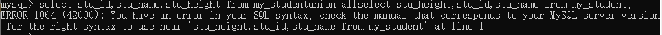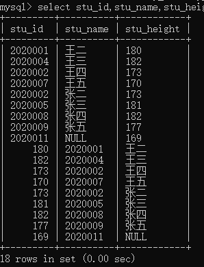 select stu_id,stu_name,stu_height from my_student union all select stu_height,stu_id,stu_name from my_student;