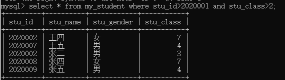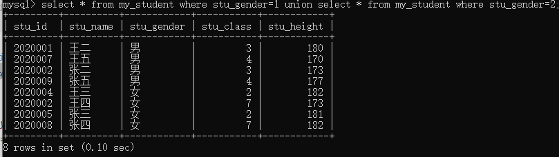 select * from my_student where stu_gender=1 union select * from my_student where stu_gender=2;