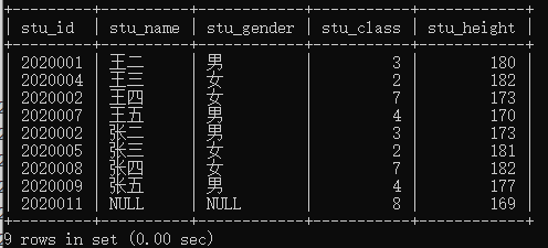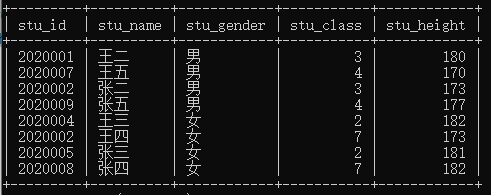 select * from my_student where stu_gender=2 order by stu_height desc;