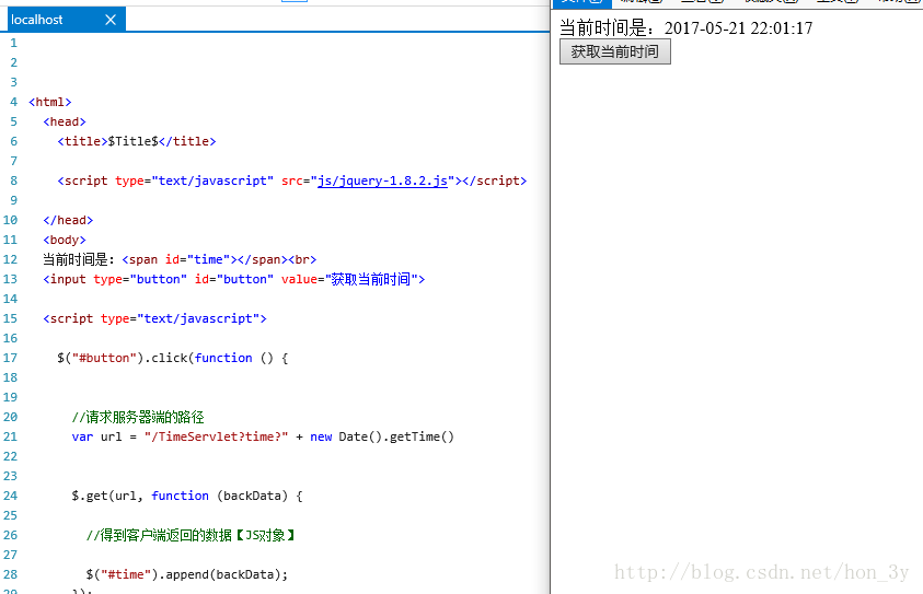 - get()方法不是使用Jquery对象来调用,因此需要手动把结果放在想要放的位置