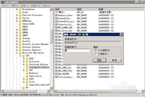 修改注册表:hkey_local_machine/software/microsoft/microsoft sql server/100/configurationstate里的 commonfiles 值改成 3
