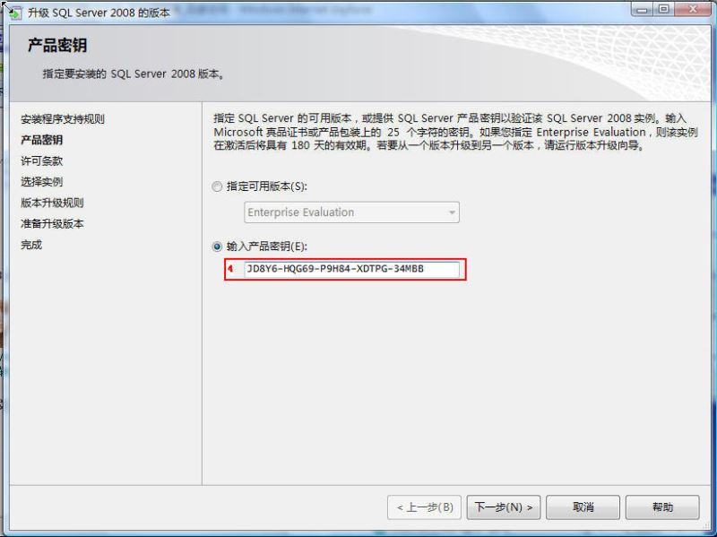 进入产品密钥,输入密钥jd8y6-hqg69-p9h84-xdtpg-34mbb