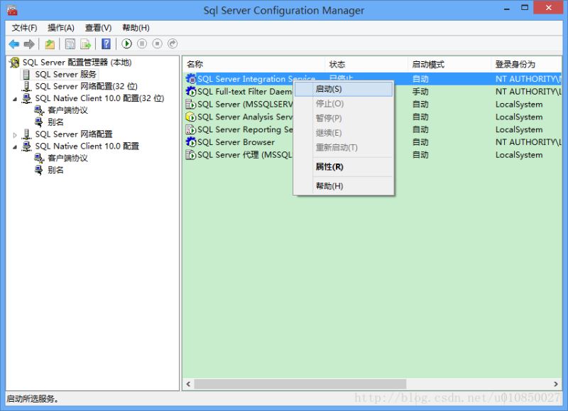 解决:第一步,程序--sql server2008--配置工具--sql server配置管理器,找到sql server网络配置中的mssqlserver的协议:启用如下协议。