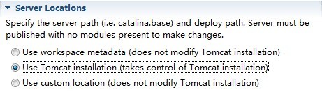 双击Tomcat服务,Server Locations中选择第二项,如下图: