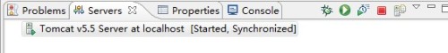 第三步:在Eclipse中,启动添加的Tomcat服务,如果提示8005,8080,8009端口被占用,则打开电脑的任务管理器,结束javaw进程,即可,下图为启动状态,绿色-启动,红色-关闭。