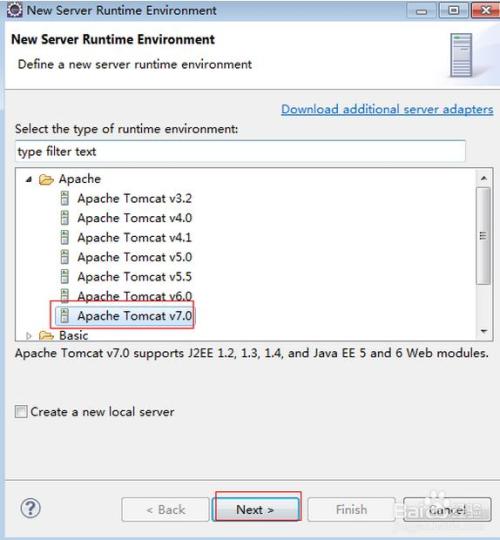 在打开的添加服务器界面,选择我们本次要添加的tomcat服务器版本“Apache Tomcat v7.0”再点击“Next” 按钮