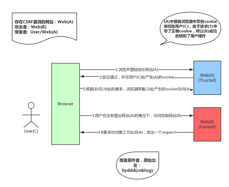 而且,从头到尾,攻击网站都没有获取到过 cookie,都是通过浏览器间接实现(利用Web的cookie隐式身份验证机制),所以HttpOnly并不会影响这个攻击