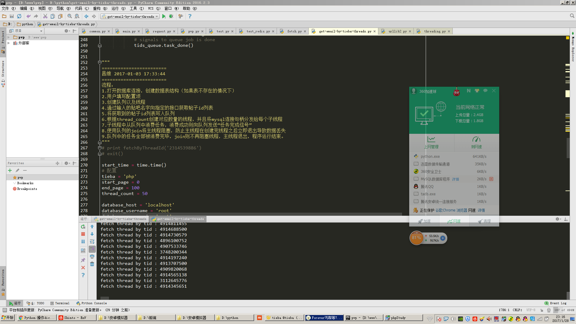如图所示,开50个线程抓取100页(每页30个帖子,相当于抓取了3000个帖子)贴吧帖子内容并且从中提取出手机邮箱这个步骤共耗时330秒。