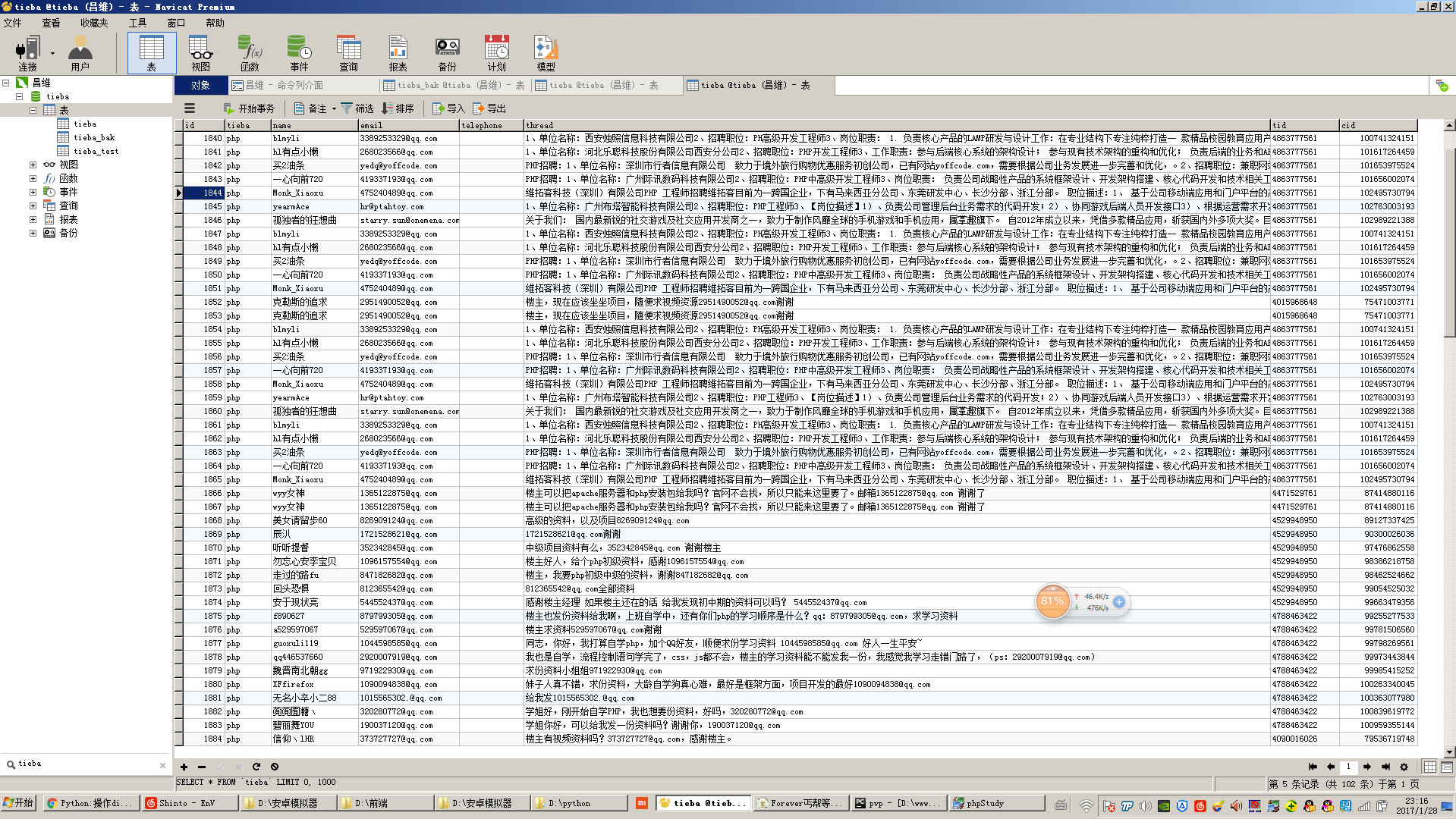 不知道大家过年都是怎么过的,反正栏主是在家睡了一天,醒来的时候登QQ发现有人找我要一份贴吧爬虫的源代码,想起之前练手的时候写过一个抓取百度贴吧发帖记录中的邮箱与手机号的爬虫,于是开源分享给大家学习与参考。