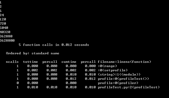 如果需要将输出以日志的形式保存,只需要在调用的时候加入另外一个参数。如 profile.run(“profileTest()”,”testprof”)。