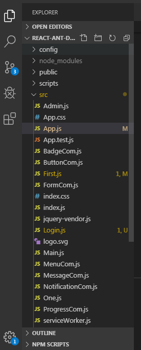 假设react项目用的是react脚手架搭建,则在src目录下的app.js文件中设置路由: