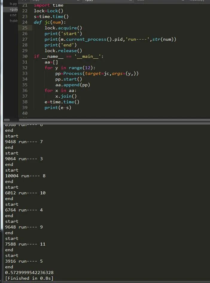 虽然异步编程多进程给我们带来了便利,但是进程启动后是不可控的,我们需要将它控制住,让它干我们觉得有意义的事,这个时候我们需要给它加锁,和线程一样都是lock: