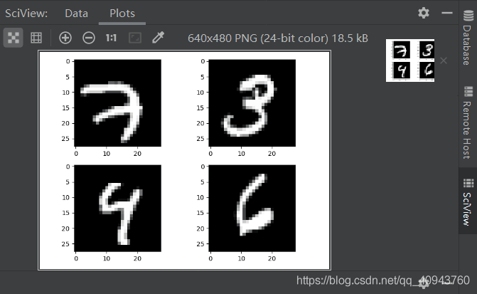 - 首先,我们预览数据集,运行mnistplt.py,绘制了4张训练用到的图像