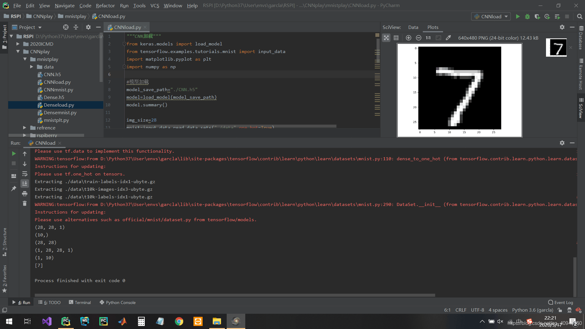 - 训练卷积网络则运行cnnmnist.py,得到权重cnn.h5,加载模型并预测运行cnnload.py