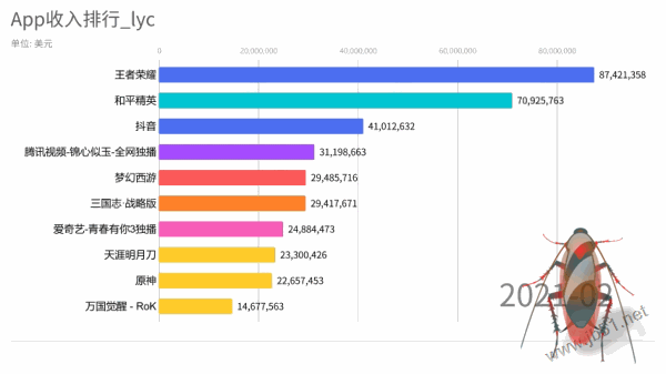 这里展示的是app近一年的月收入排行前十流水线。