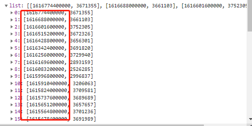 上图红框中是时间戳,需要转为日期,比如1616774400000转为2021-3-27