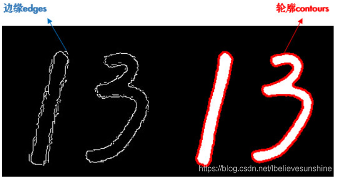 轮廓找出来后,可以像图中那样用红色画出来:cv.drawcontours()