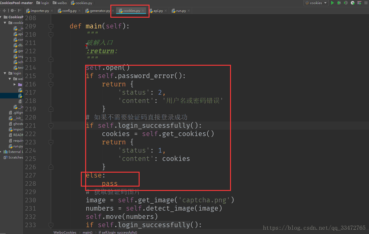 下载代码cookie池(这里主要是微博登录,也可以自己配置置其他的站点网址)